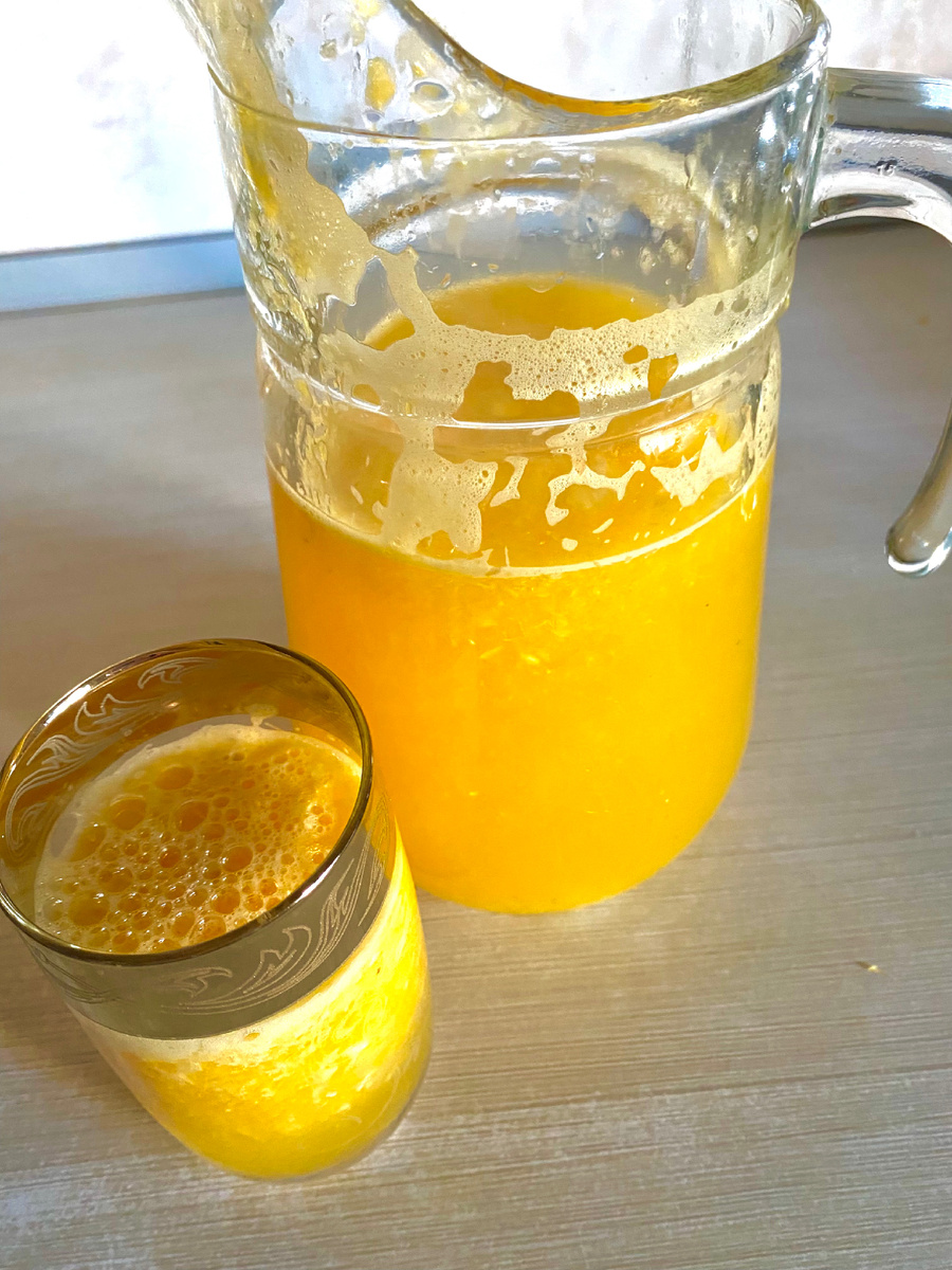 Невероятно! С двух апельсинов сделаем 2 литра сока? Сегодня это актуально! 4 мая День апельсинового сока. Этот напиток ценят за его вкус, аромат.Апельсин - один из самых любимых фруктов на Земле. Его регулярное употребление благотворно влияет на организм. В апельсинах много витамина С, который укрепляет иммунитет и помогает усваивать кальций, важный для зубов и костей,также снижает уровень холестерина, защищая сосуды.Витамин В6 в апельсинах улучшает состояние кожи, делая её гладкой и сияющей. Ингредиенты: Приготовление: Снимите кожуру и нарежьте апельсин кубиками. Положите кусочки апельсина в блендер и измельчите. Добавьте сахар и тщательно перемешайте. В полученную массу выжать половину лимона и влить 2 литра воды. Апельсиновый сок желательно процедить, но если вам нравится с мякотью, как и мне, можете этого не делать . Храните сок в прохладном месте.Пейте апельсиновый сок охлажденным.Будьте здоровы и счастливы.