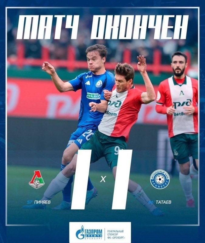 "Оренбург" не смог выиграть в гостевом матче у "Локомотива" Футбольный мачт закончился в ничью со счетом 1:1. В рамках 27 тура Российской Премьер-Лиги ФК «Оренбург» завершил матч против московского «Локомотива» вничью со счетом 1:1.
