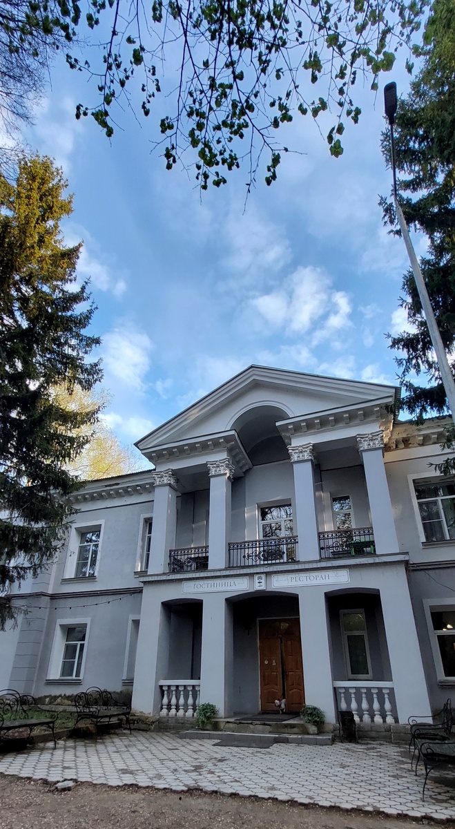 Та самая отдельная статья. Вчера вечером из парка Патриот в Туле мы поехали заселяться в гостиницу. Бывший дом отдыха в советское время, а сейчас гостиница "Ясная поляна". Адрес: д. Ясная Поляна, 6 Находится в получасе ходьбы через лес средним шагом от музея-усадьбы Ясная поляна. Стоимость номера люкс на двоих с завтраками 5300 р. На троих (доп место на раскладном диване) 6100 р. Название номеров Люкс, конечно, притянуто за уши. Но зато высокие потолки, просторные комнаты, кондиционер, хрустящее постельное бельё. Кружки тематичные меня покорили 🥰 Персонал чудесный - и девушка на ресепшене, и её помощница, и горничная, и девушки в ресторане и кафе. Улыбчивые, отзывчивые. Если не знают ответ, метнутся, позвонят и выяснят. А - атмосфера 👍🏻 Наши номера были на 2 этаже. На первом этаже ресторан "Дворянская усадьба". Так как мы приехали поздно, то естественно пошли узнавать можно ли там поужинать. Нам дали с собой в номер меню. Мы выбрали, я сходила озвучила выбранное и через 5