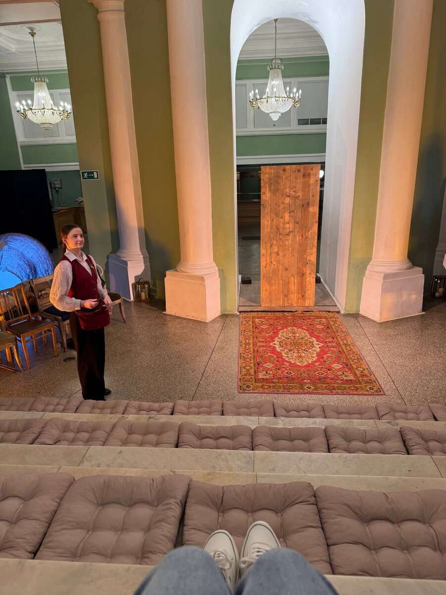 Сходила на спектакль "Зобеида" в РАМТ: 🔹 Постановка сказочной трагедии Карло Гоцци от режиссёра Олега Долина. Премьера июня 2019 года, 1:40 без антракта. В теплую погоду играют в театральном дворике под открытым небом, а в дождь в фойе на первом этаже напротив гардероба. 🔹 Наверное, самая аутентичная стилизация под комедию дель арте, которую я видела. Ветхие маски и костюмы из чего придётся как будто достали через временной портал из XVII века. 🔹 То ли возможность по-хулигански посмотреть спектакль, сидя на лестнице, то ли ещё отчего, но восприятие получилось совершенно детским взглядом. От чёрных окуляров и чудищ из картонок было по-настоящему жутко! Перчика в виде злободневных шуточек не оценила, а в остальном весь спектакль улыбалась, отчего даже немного болело лицо после. #театры@moskvichkatg