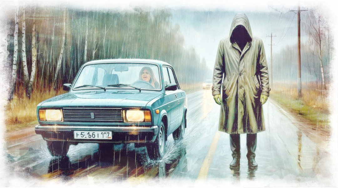 Внезапно фары выхватили из тьмы фигуру – высокую, неподвижную. Человек стоял посреди дороги, раскинув руки, будто распятие. Галина резко нажала на тормоз - машину занесло, но она успела остановиться в метре от мужчины в длинном черном плаще.