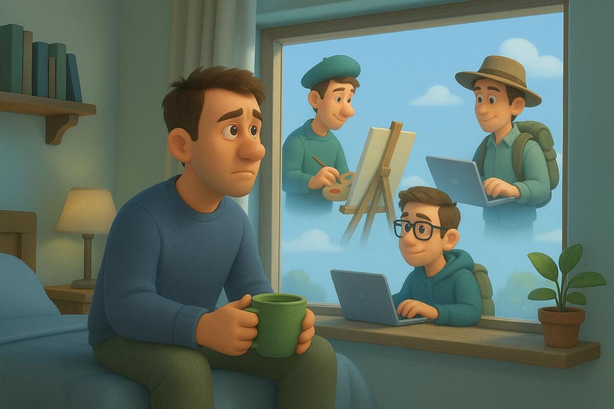 75% людей от 25 до 41 года не нашли себя и свое призвание и это не зависит от достижений и счета в банке. Это не кризис мотивации, а созданный образ «себя» из ожиданий, часто даже не своих. Это когда вместо «хочу» — «надо». Как проявляется? — Не понимаешь зачем ты все это делаешь; — Нет эмоций к своему делу; — Ждёшь момента, который вот-вот и все изменится. Но наступает паника, а не момент, потому что чем дальше, тем сильнее желание «определиться». Ждешь уверенности, вдохновения, что «свой» путь почувствуешь сразу. Но уверенность это результат после действий, а не до. Что может помочь? 1. Маленькие шаги. — Достаточно 2х минут, чтобы начать что угодно, сделать действие в сторону интересной темы, примерить на себя; 2. Просеивание. — Отсеить лишнее, сузить поле выбора, «Что я точно никогда НЕ буду делать?» 3. Нравится-не нравится. — Посмотреть на себя через то, что любишь, занятия, еда, музыка, места, что заряжает. *Мой метод — довести себя до состояния, когда невозможно оста