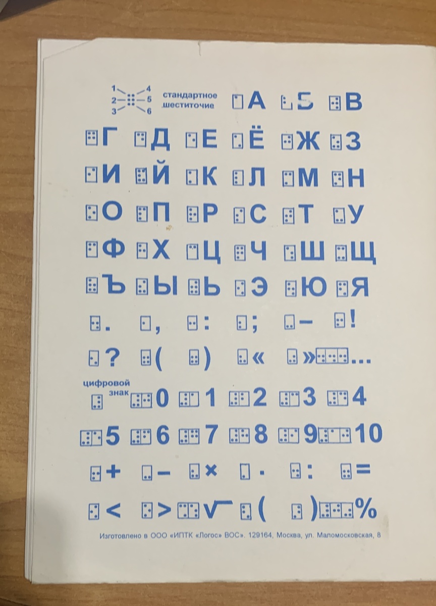 Это шеститочечный формат шрифта, где каждая буква обозначается одной или несколькими точками)