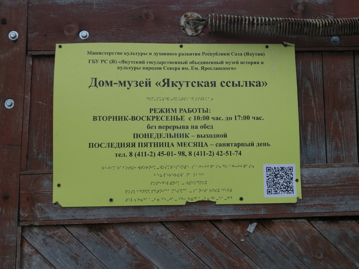 Одним из музеев, который мы посетили в Якутске, стал дом-музей «Якутская ссылка». Увы, нам не повезло с экскурсией, приехали мы за час до закрытия и экскурсовода уже не было. Походили сами, почитали информационные таблички.
