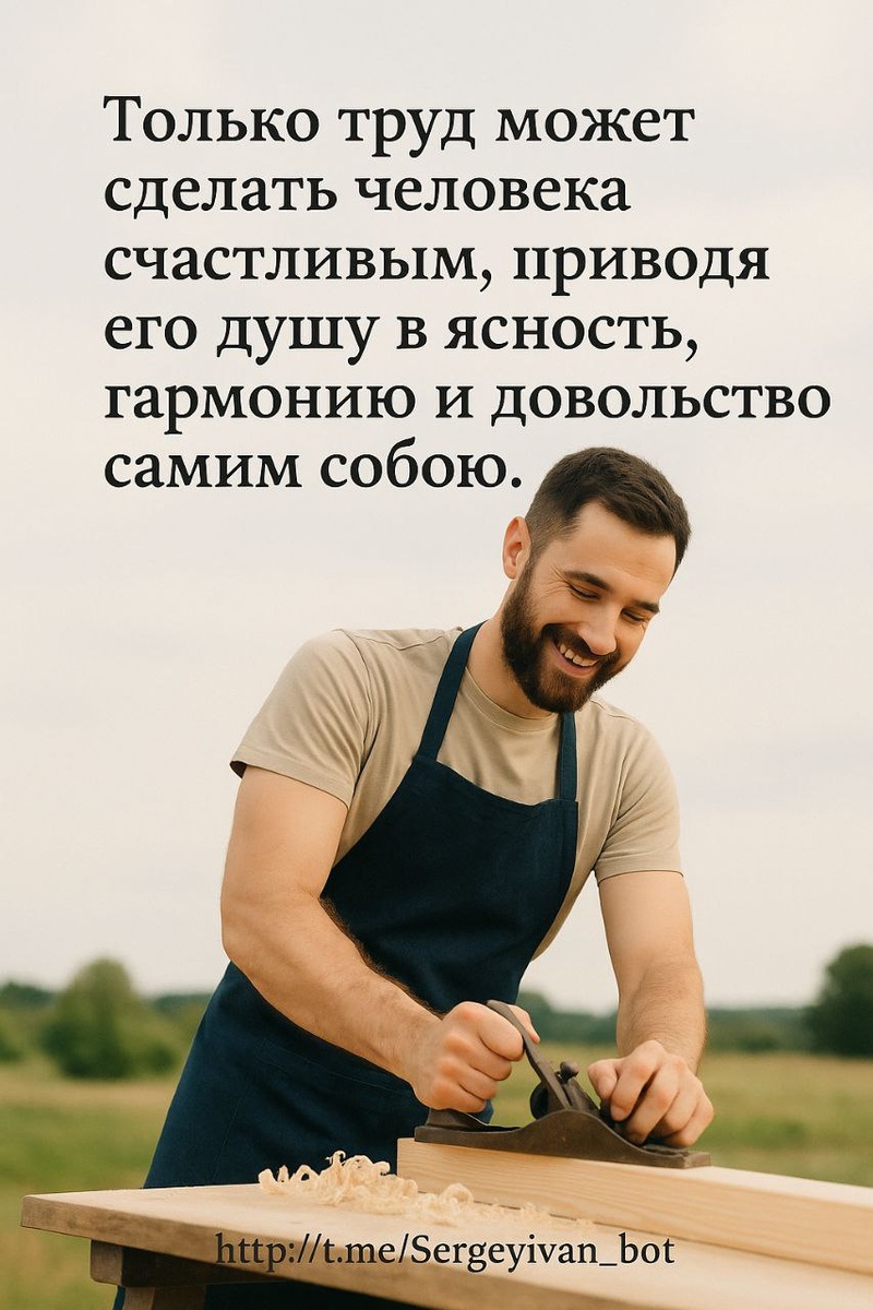 Только через искренний и осмысленный труд человек обретает настоящее счастье — душевную ясность, внутреннюю гармонию и глубокое чувство удовлетворения собой. http://t.me/Sergeyivan_bot