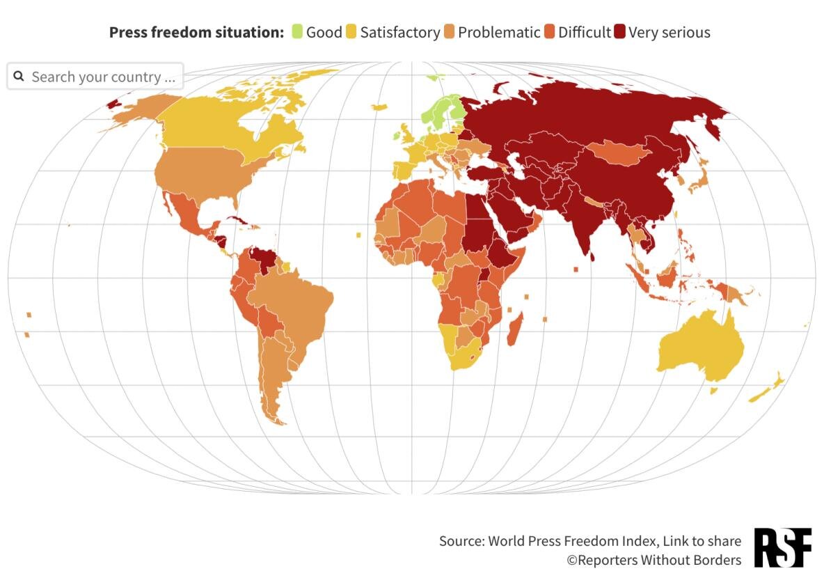Пока новость не устарела, всё-таки стоит упомянуть недавний рейтинг свободы прессы, опубликованный организацией «Репортёры без границ