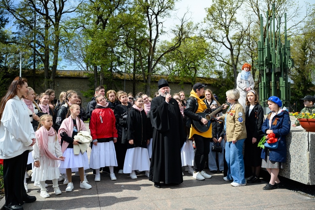 9 мая 2025 года, в День Победы, у мемориала Славы «Могила Неизвестного Солдата» состоялась акция патриотической военной песни, организованная Псковской епархией. В этот день фронтовые песни и песни о Великой войне исполнили: митрополит Псковский и Порховский Матфей, духовенство епархии, участники молодежного центра “Трилучье”, участники детского эстрадного хора «Лакки Лайк» при Свято-Успенском Псково-Печерском монастыре, а также псковичи, пришедшие в этот день отдать дань памяти воинам-защитникам Родины России. В завершение все участники акции возложили цветы к Могиле Неизвестного Солдата. Видеозапись смотрите на нашем сайте: https://pskov-eparhia.ru/archives/81883