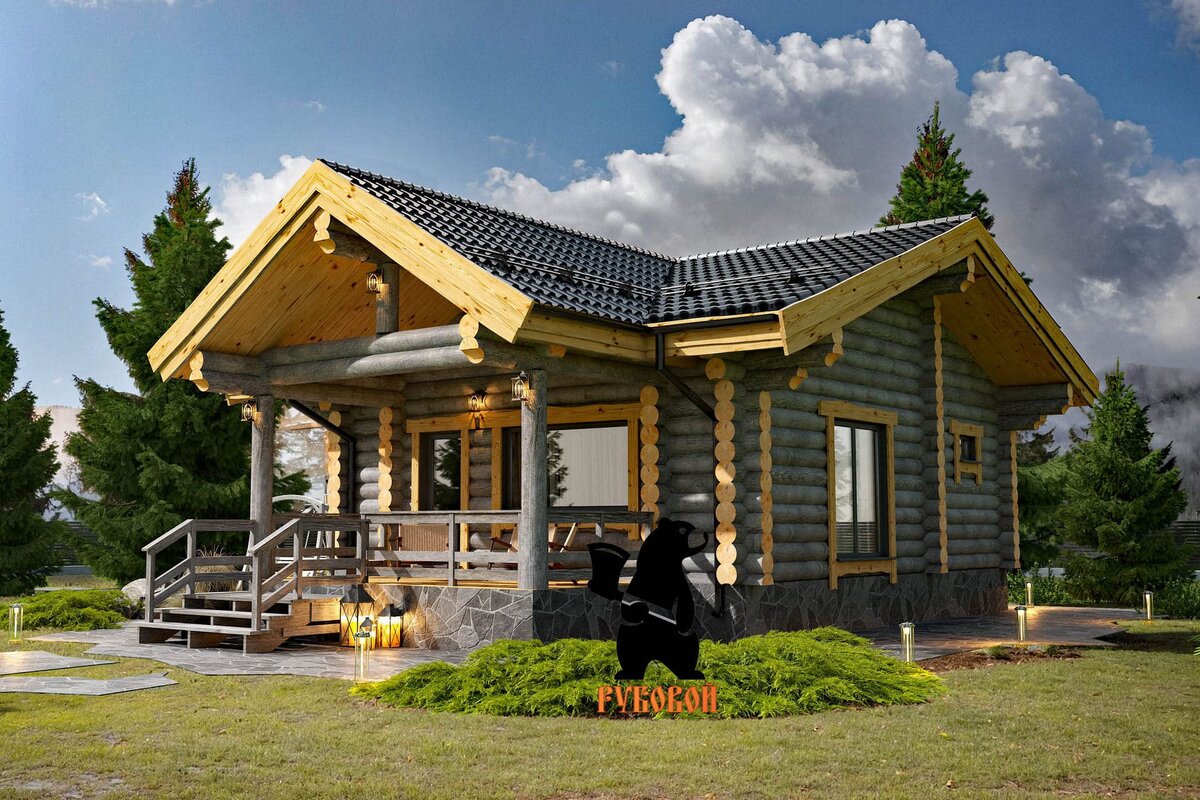В проекте: большая комната отдыха с зоной кухни и вторым светом, русская парилка на дровах, моечное отделение увеличенного размера с купелью, санузел, веранда.