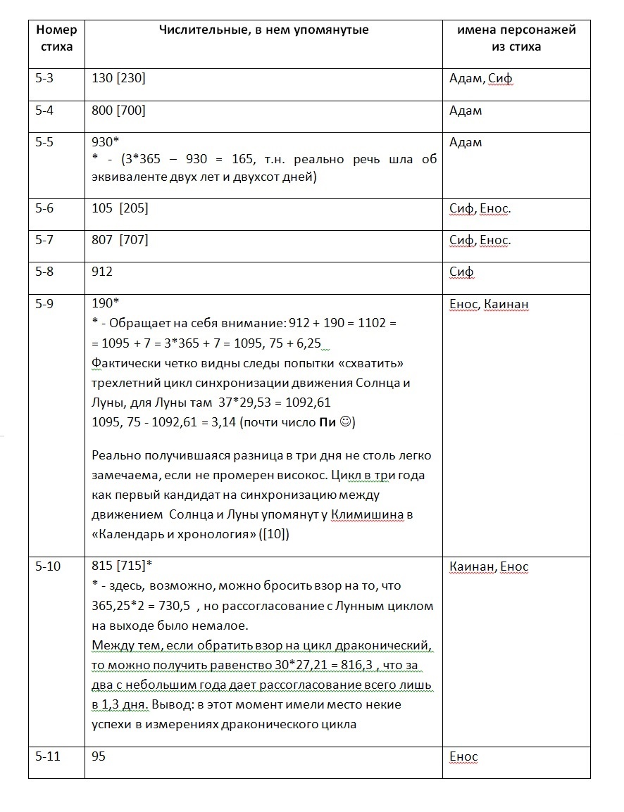 А заочное творческое взаимодействие с Владимиром Викторовичем Блажновым по никнейму vava еще привело к написанию статьи «О вполне возможных хронологических аллегориях Евангелия, и что за ними могло бы стоять» ([9]). Именно начиная с этого момента автору этих строк начало попадаться все больше и больше библейского материала, причем непосредственный интерес к пятой главе книги Бытия у автора этих строк появился, когда ему бросилось в глаза упоминание патриарха, прожившего триста шестьдесят пять лет.