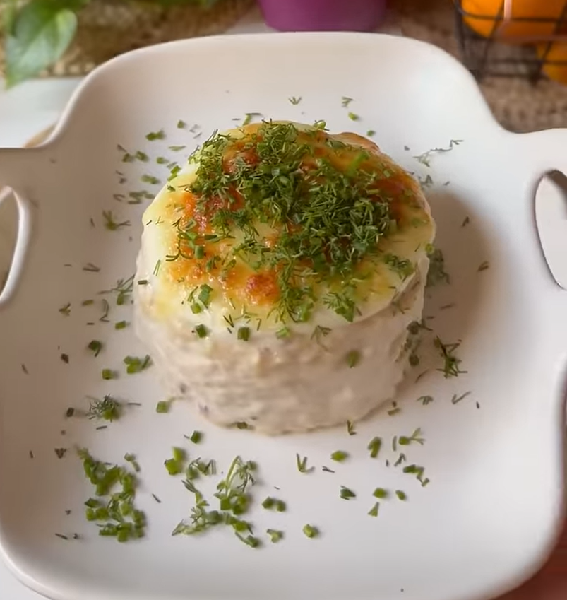 ИНГРЕДИЕНТЫ: - помидоры, нарезанные кружочками; - куриный фарш, перекрученный вместе луком и чесноком; - жаренные грибы с луком; - сметана (или майонез, или йогурт); - сыр (который хорошо плавится, например, моцарелла) ПРОЦЕСС ПОДГОТОВКИ: 1) Выложить слои в пиалу (или любую другую форму, она понадобится только для формирования пирамидок) - слои хорошо придавливать: 1-ый слой: на дно пиалы положить кружок помидора.; 2-ой слой: куриный фарш; 3-ий слой: жаренные грибы; 4-ый слой: куриный фарш; 2) Пиалу перевернуть на форму для запекания: 5-ый слой: смазать верхушку "пирамидки" (это будет кружочек помидора) или сметаной, или майонезом, или йогуртом; 6-слой: посыпать сыром. ПРОЦЕСС ЗАПЕКАНИЯ: 30 минут (в заранее хорошо разогретой духовке).