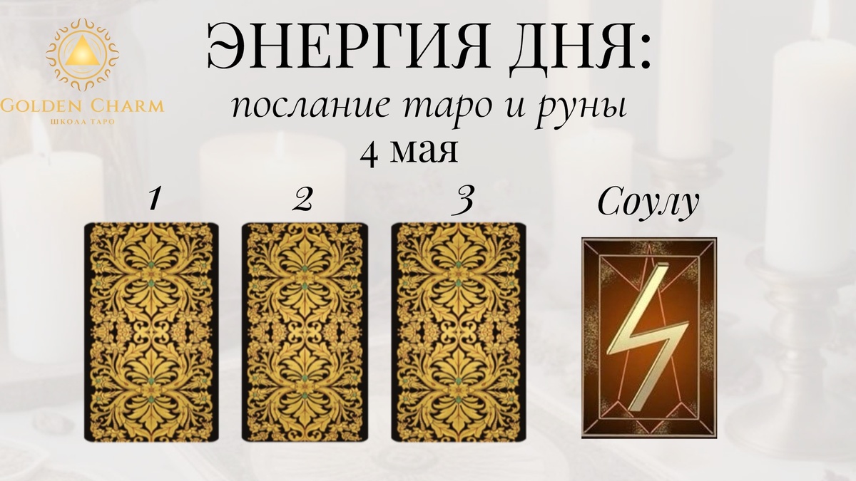 Заказать личный расклад тут✅ Прогноз на 4 мая : что тебя ждёт Приходи на обучение Таро ✅ Выбери карту — 1, 2 или 3 — и узнай, какой путь для тебя: 1. Королева Мечей Этот день подарит ясность ума и способность видеть ситуацию объективно. Сегодня удачный день для принятия важных решений. 2. Девятка пентаклей Возможно получение неожиданного дохода или открытие новых возможностей для заработка. Будь открыт новым идеям и возможностям — вселенная готова поддержать твои финансовые цели. 3. Пятёрка кубков Этот день принесёт эмоциональные переживания, будь они положительными или отрицательными. Важно принять эмоции такими, какие они есть, позволить себе чувствовать всё, что приходит изнутри. Руна дня — Соулу Это благоприятный период для начала новых проектов, воплощения идей и развития талантов. Позволь своей внутренней силе раскрыться и осветить твой путь вперёд. Напиши цифру карты + СОУЛУ в комментариях, чтобы активировать энергию. Хочешь личный расклад? Пиши — посм