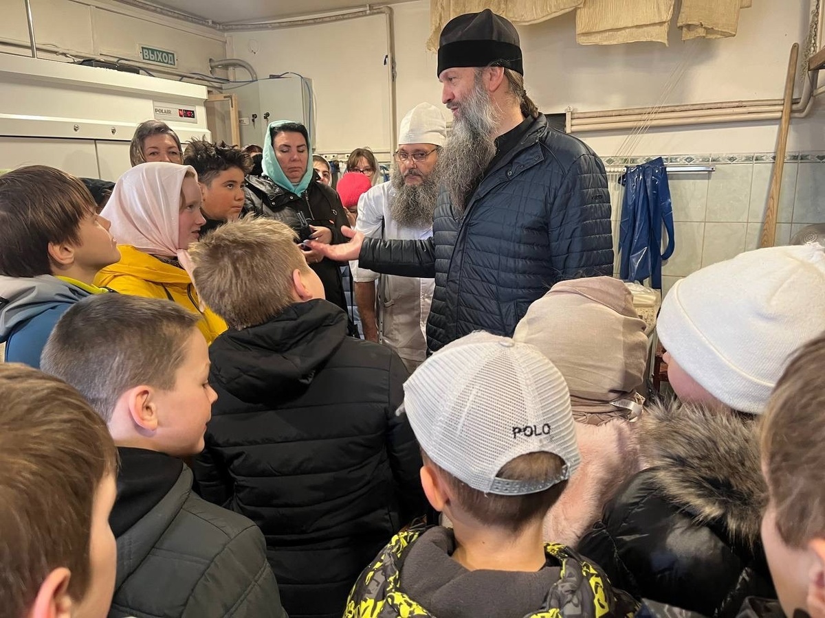 Наместник монастыря иеромонах Всеволод (Сиканов) рассказал детям о том, какая большая работа предстоит тому, кто хочет приготовить сыр. В монастыре это делают с молитвой и усердием. С процессом изготовления сыра дети познакомились под руководством послушников Сергия и Олега.