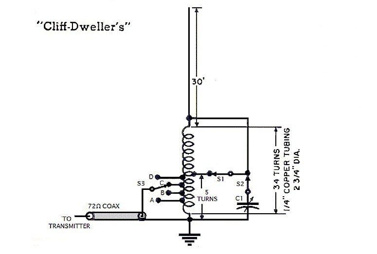 Многодиапазонный вертикал на КВ «Cliff Dweller’s» 🔹 Схема, разработанная автором 4-х диапазонного Cliff Dweller’s, не требует дополнительных разъяснений и может представлять интерес для других исследователей. Эта антенна не заменит трёхэлементную yagi на мачте высотой 20 м, однако, учитывая пространство, стоимость и простоту настройки, это отличный компромисс. 🔹 По сути, антенна работает как 1/8 волны в 80 м, ¼ волны в 40 м, ½ волны в 20 м и ¾ волны в 15 м, будучи загруженной на всех диапазонах, кроме 20 метров, где она питается от параллельного резонансного контура. Читать далее >>