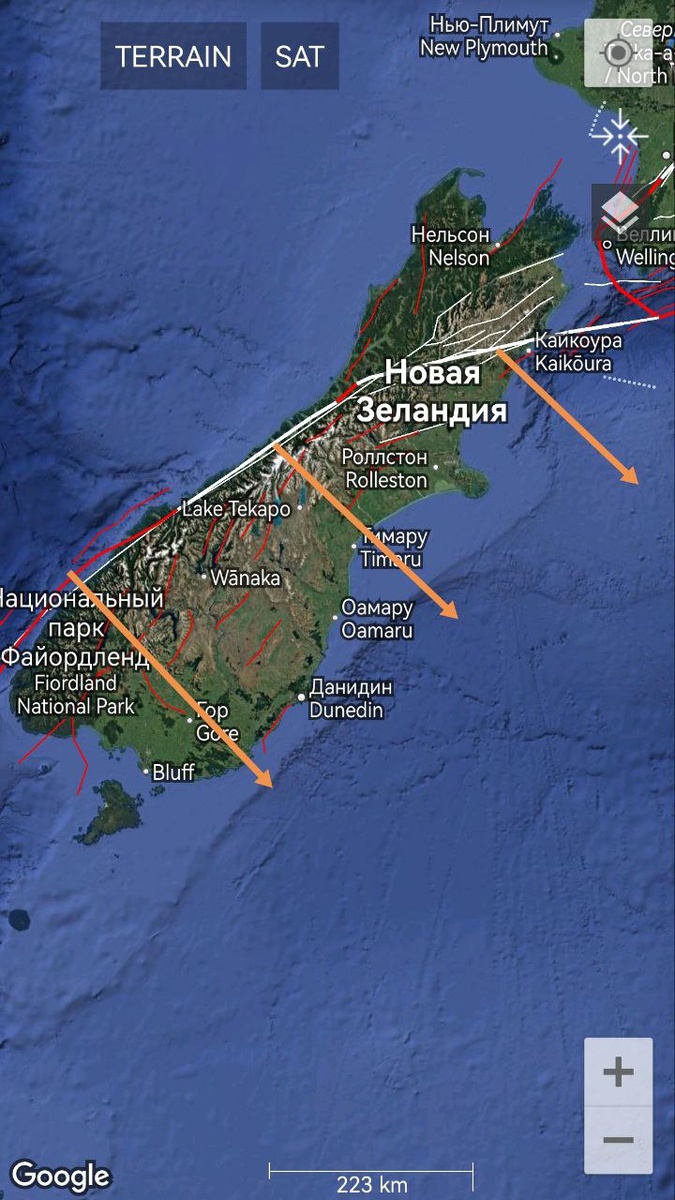 По Новой Зеландии есть вероятность землетрясения М6+ на Южном острове и М5+ на Северном острове до 13 мая ==== In New Zealand, there is a possibility of an M6+ earthquake on the South Island and M5+ on the North Island before May 13.