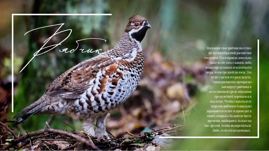 Ну только посмотрите какие красавцы, это - рябчики! Красивейшие птицы, которые также относятся к боровой дичи. И название свое, как я думаю понятно, рябчики получили из-за своей своеобразной расцветки, которая прекрасно маскирует их в естественной среде обитания среди ветвей деревьев и в подлеске. Выдать их может только движение. Сидели бы неподвижно и никто-бы из охотников никогда их не нашел, но рябчики те еще непоседы. Кроме того, забыла сказать, что рябчик - оседлая птица и даже на зиму никуда не улетает, а чтобы укрыться от морозов рябчики буквально зарываются в снег и проводят в своих «норках» большую часть времени, выбираясь только на час-другой, чтобы подкрепиться. Так, по сравнению с другими пернатыми рябчик летает достаточно мало. Гнезда обустраивает на земле, где-нибудь в непролазном лесу. Ему нравится чтобы вокруг были березки, ольха и елочки. Потому что почками и бруньками он питается, а под елкой - любит прятаться. А еще рябчики моногамны. Ну хоть кто-то! Потому что проч