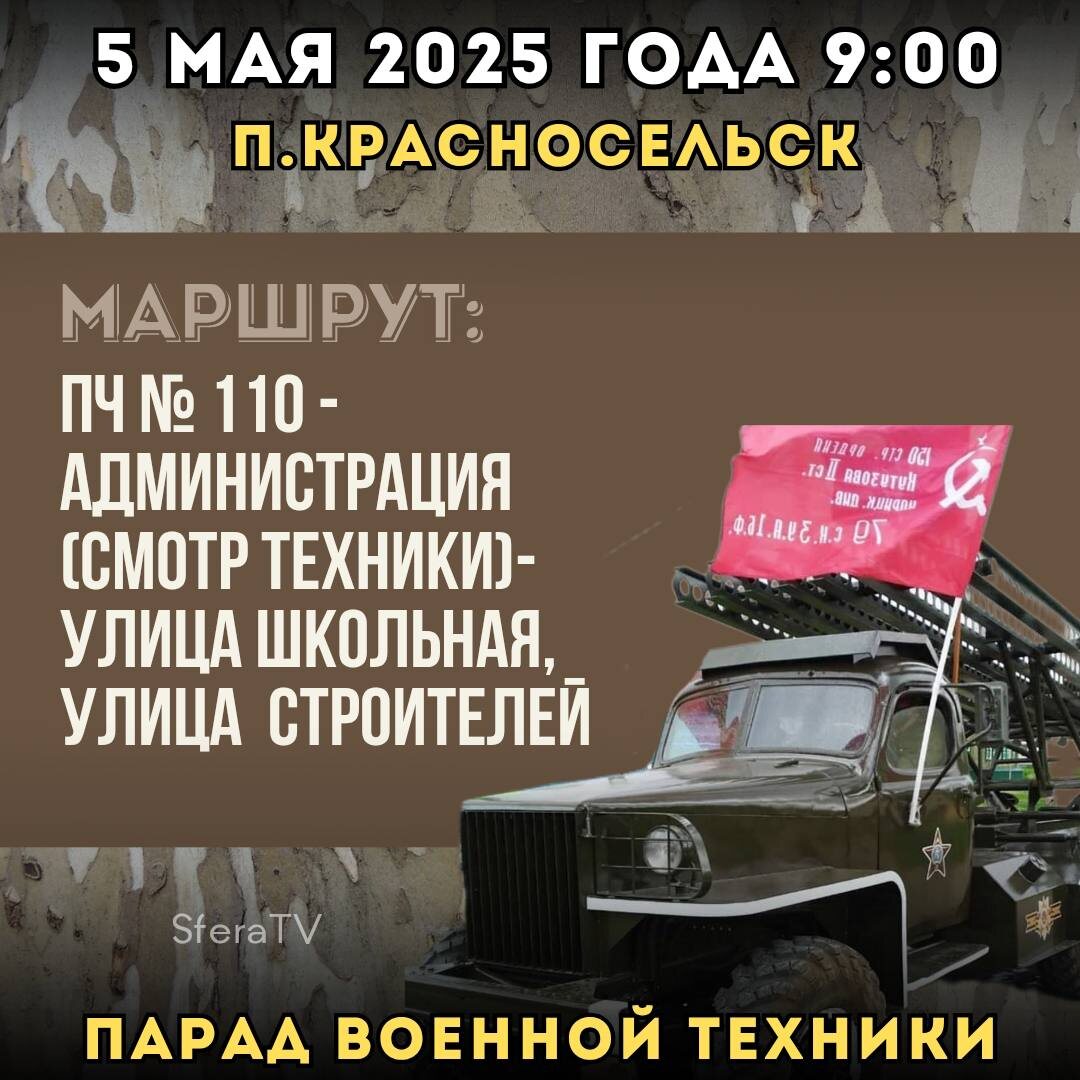 Напоминаем вам, что уже завтра, 5 мая, в Новоспасском районе начнется автопробег военной техники, посвящённый Дню Великой Победы 🛡🚛🇷🇺