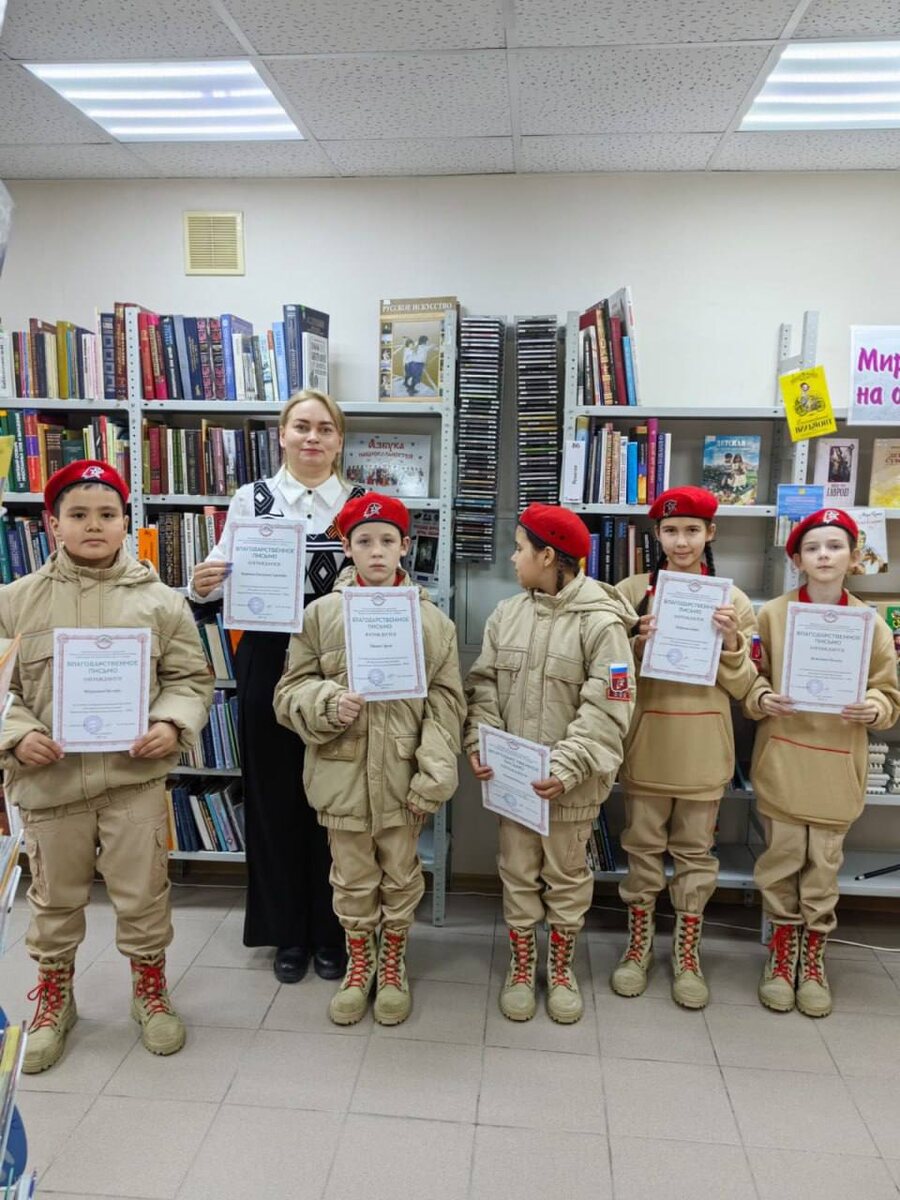 Как передаётся память ⁉️ Юнармейцы школы №4 города Южно-Сахалинска окунулись в атмосферу истории и доблести, посетив Центральную детскую библиотеку. 📚 В рамках акции «Библио-сумерки», посвящённой Дню Победы, ребята не только узнали больше о военной истории, но и стали частью интересного мероприятия. Юнармейцы отвечали на вопросы викторины, вспоминая героев и ключевые события Великой Отечественной войны. С особым трепетом они писали письма нынешним защитникам Отечества, передавая в них слова поддержки и благодарности. А в тишине библиотеки прозвучали проникновенные стихи… 📍 Завершился вечер торжественным исполнением гимна Юнармии – так наши юнармейцы ещё раз доказали, что память о подвиге предков жива в их сердцах. #Юнармия #Юнармия65