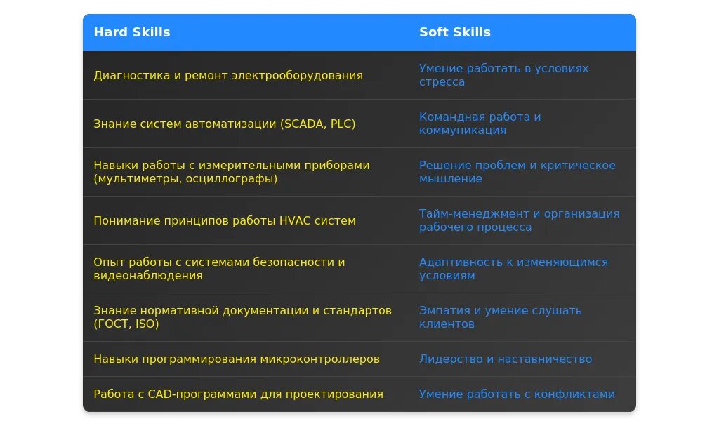 ✅ Пример 1: "Базовые знания электротехники и механики. Готов к обучению работе с системами автоматизации."