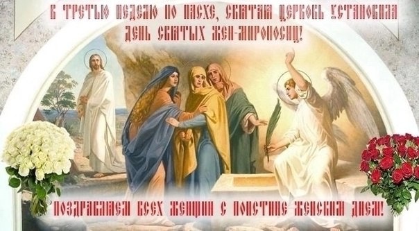 ДЕНЬ СВЯТЫХ ЖЕН-МИРОНОСИЦ🌹 В третье воскресенье после Пасхи Христовой, Церковь прославляет подвиг святых жен-мироносиц: Марии Магдалины, Марии Клеоповой, Саломии, Иоанны, Марфы и Марии, Сусанны и других. Это женщины и девушки, которые вслед за апостолами следовали за Христом, внимая Его проповедям и служа своей заботливостью. Когда Господа вели на Голгофу, они молясь и плача следовали за Ним. Когда Христос воскрес, то они ещё не зная об этом, отвергнув страх быть наказанными от властей, рано по утру шли ко гробу Господню с ароматами, чтобы помазать Тело Учителя. Они же и первыми узнали, что Христос жив, что Он Воскрес! В православном вероучении в отличии от других религий, очень трепетное и уважительное отношение к женщинам. Подробнее в комментариях... ----- Сообщает: МИАССКОЕ ЮЖНОЕ БЛАГОЧИНИЕ | Челябинская епархия 🫛Миасс Православный