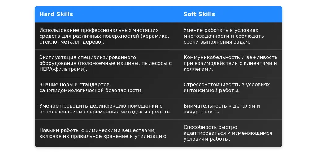 - Глубину экспертизы (например, знание специфики уборки медицинских учреждений)