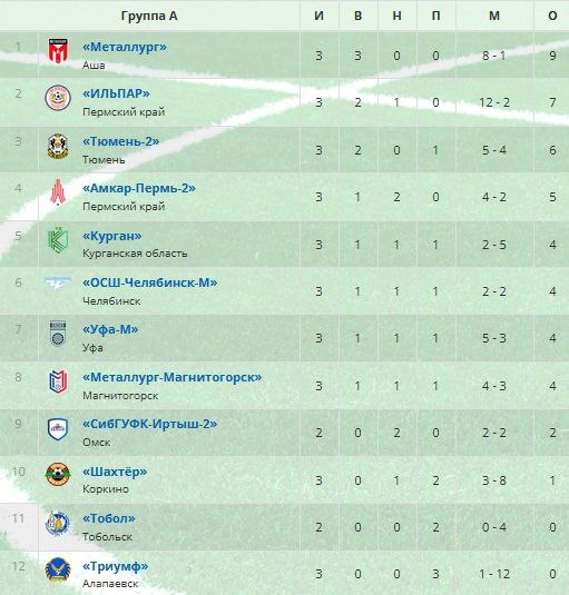 Турнирная таблица после окончания третьего тура по футболу третьей лиги сезона 2025