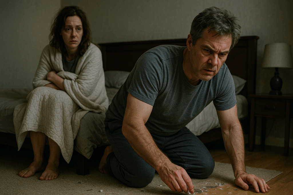 София проснулась от того, что Валера стоял на коленях посреди спальни и собирал осколки. Вчерашний стакан с водой — хрустальный, подарок матери — превратился в сотни острых льдинок. Муж ругался себе под нос: «Чёрт… опять…»