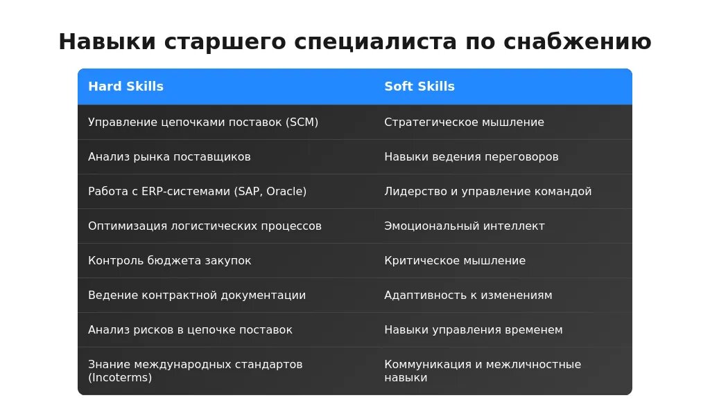 Анализ требований вакансии для "старшего специалиста по снабжению"