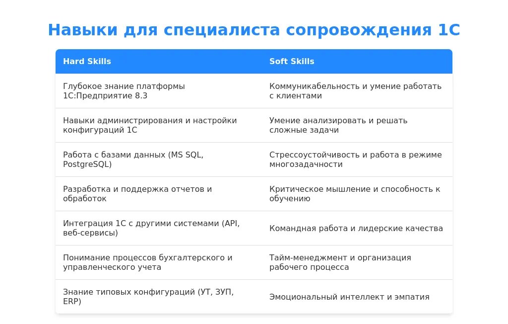 Анализ требований вакансии для специалиста сопровождения 1С