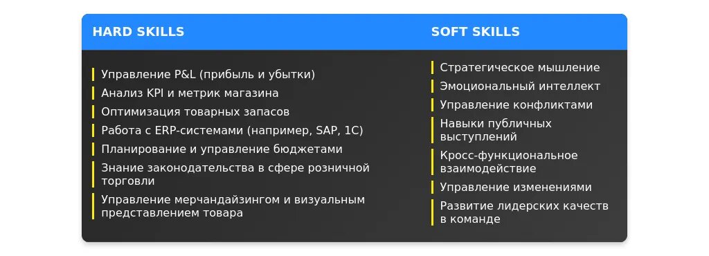 - Управленческие навыки: лидерство, стратегическое мышление.