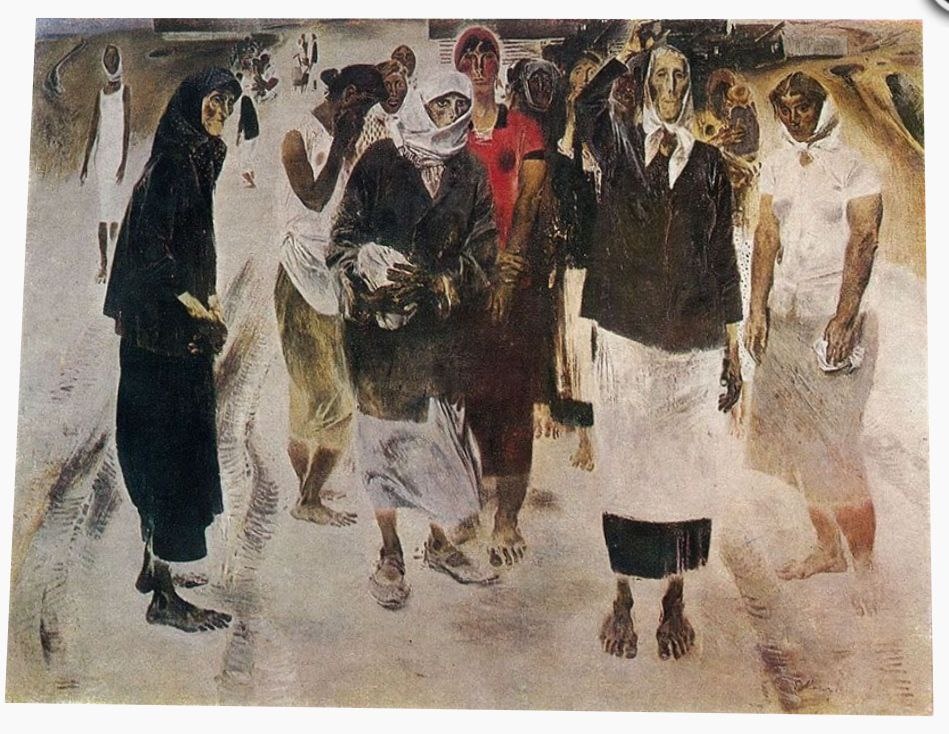 Искусство и война, искусство на войне - логически не сочетаемые понятия. Вспомним далекое прошлое, работы великих мастеров мировой художественной культуры, трагические сюжеты, символы страдания и ужаса в офортах Ж. Калло и Ф.Гойи, в живописи В.Верещагина и С.Дали, А.Дейнеки и П.Пикассо, в скульптурных произведениях Г.Мура и Э.Неизвестного, Е.Вучетича и В.Мухиной .. #яркиеличности Матери, сёстры», Евсей Моисеенко, 1967 #Никто_не_забыт_ничто_не_забыто