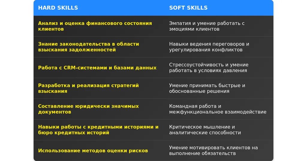 - Знание законодательства в области взыскания долгов