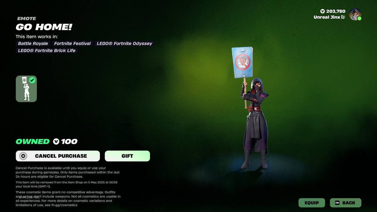 🧀Fortnite Status: Ограниченная по времени эмоция «Go Home!» была ненадолго представлена в магазине и была удалена