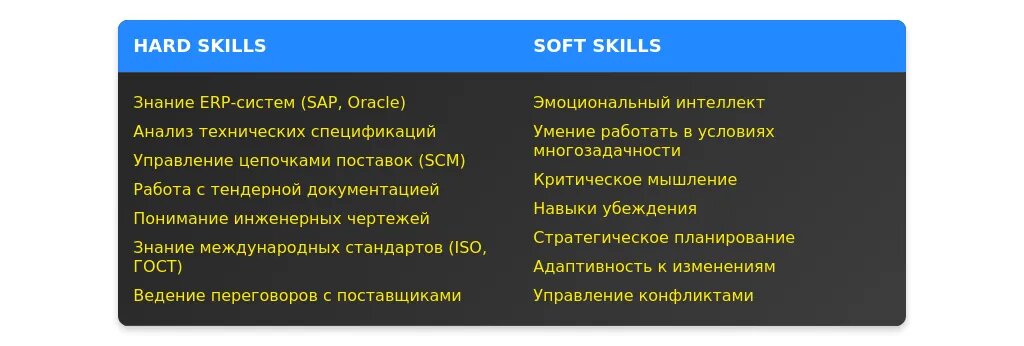 - Делайте акцент на базовых навыках, таких как знание Excel, основ закупок и коммуникации.