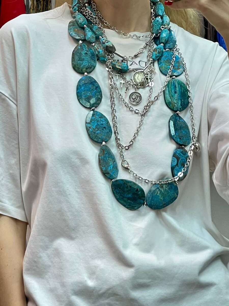 Если вам, так же, как и нам не идут минималистичные украшения, я вас этим постом окуну в бездну авторских аксессуаров, которые настолько же самодостаточны, как и вы. Прелесть их не только в дизайне, который вы не найдете больше ни на одной шее в радиусе 100 километров, но и в том, что вся эта многослойность собирается в разные комбинации и комплектации. Чтобы вы могли контролировать уровень обвеса в зависимости от того в чем вы сегодня - в белой майке и джинсах, или в вечернем платье с интригующим вырезом на спине. 1,2 Пояс со съемной патрупеей 3 Украшение из натуральных камней 4 Многослойное украшение из жемчуга 5 Колье из трех жемчужных нитей 6,7 Чокер из натуральных кораллов 8 Брелок из натуральных кораллов 10 Украшение из жемчуга в виде косы