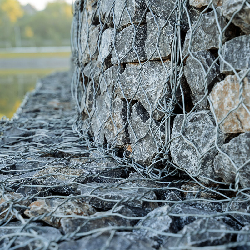 Метод двойного кручения проволоки позволяет создать прочную и устойчивую конструкцию. Проволока в таких сетках перекручена дважды, что делает её более надёжной по сравнению с обычной сварной сеткой. В случае повреждения одного из звеньев узлы остаются целыми, а конструкция продолжает выполнять свою функцию без потери прочности. Эта особенность делает габионы идеальными для сложных климатических условий и участков с подвижными грунтами.