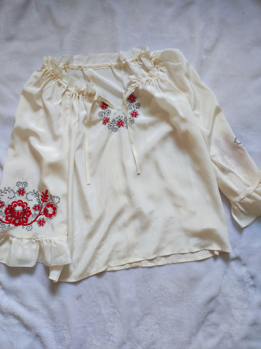 Всем привет! Праздники в самом разгаре, а я представляю Вам очередную подборку крутых вещей, которые я нашла в магазинах Секонд Хенд. Очень нравится одежда, о которой можно что то рассказать, поискать истории создания и направления брендов. Давайте начнем) 1. Эксклюзивная нежная винтажная блуза Блуза производства фабрики 8 марта города Киров СССР. Выполнена из натурального шелка молочного цвета. Очень красивая вышивка на груди и на манжетах. Сидит на манекене размером М Купить эту блузу можно за 3100 рублей 2. Платье GENRIETTA KONASH Платье дизайнера Генриетты Конаш, все наряды которой производятся в небольших количествах, по собственным лекалам и претендуют на эксклюзивность. По составу вискоза плотная, струящаяся, на девушку рост 170 размер S, но сидит на манекене размером М. Платье можно купить за 1100 рублей 3. Блуза винтажная, с вышивкой ришелье на груди и спине в зоне воротника и рукавах бренд неизвестен. Полагаю, что винтаж, т.к. есть плечики. Вискоза по составу, размер L