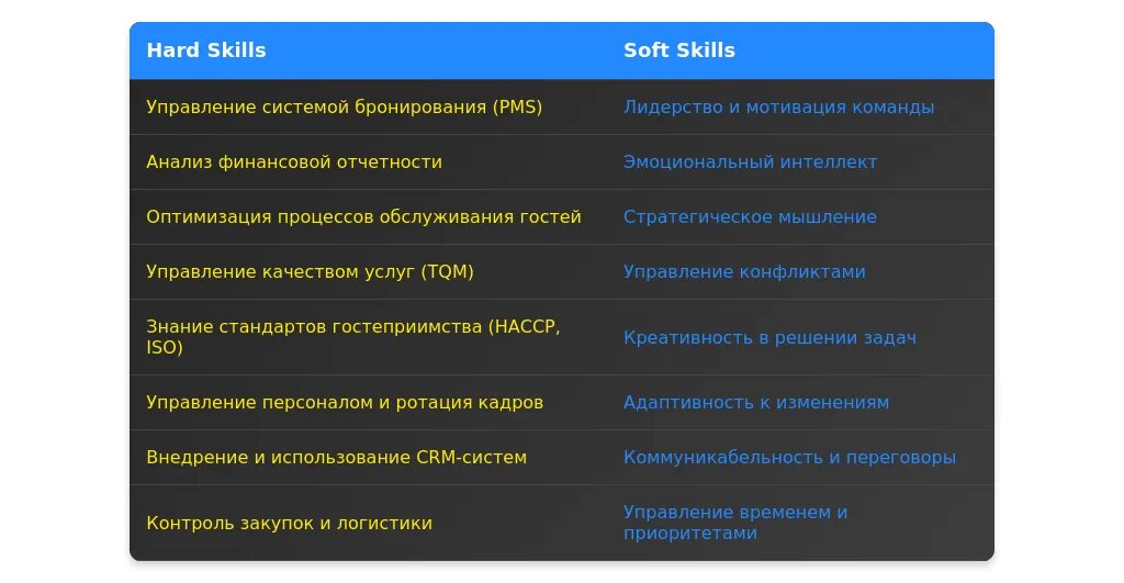 До адаптации: "Навыки управления, работа с персоналом, знание стандартов гостеприимства."