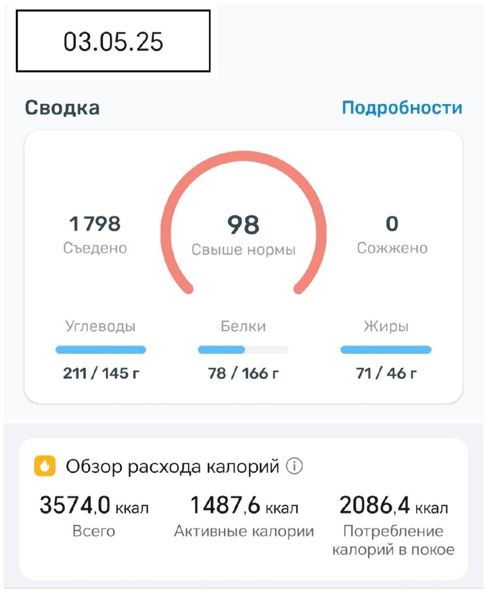 *️⃣Цифра "осталось" на фото - это сколько ещё можно съесть, чтобы выйти в 0 за день. Но мы будем считать дневной расход в покое по цифре, которую выдают весы. Мне кажется, что весы учитывают больше параметров и там цифра расхода калорий в покое точнее.