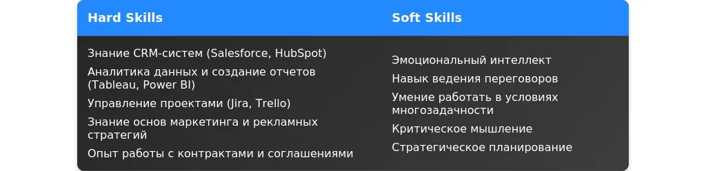 После: "Знание Excel (продвинутый уровень), работа с CRM-системами (Salesforce, HubSpot), подготовка презентаций в PowerPoint."