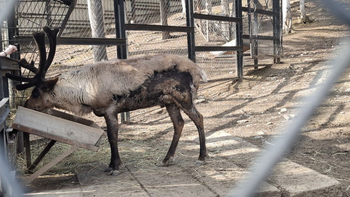 Северный олень, он не больной. Он линяет