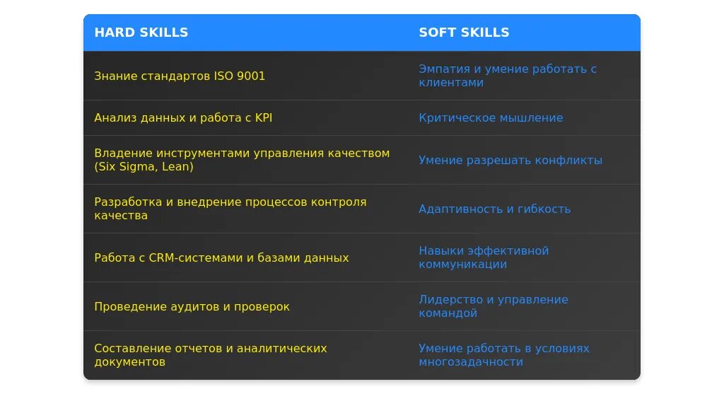 Ключевые фразы: "внедрение стандартов качества", "анализ клиентских жалоб", "проведение тренингов".
