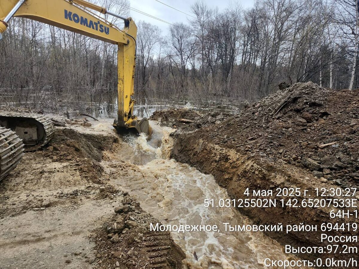 ⚠️В селе Молодежном Тымовского района ликвидировали последствия подтопления автодороги