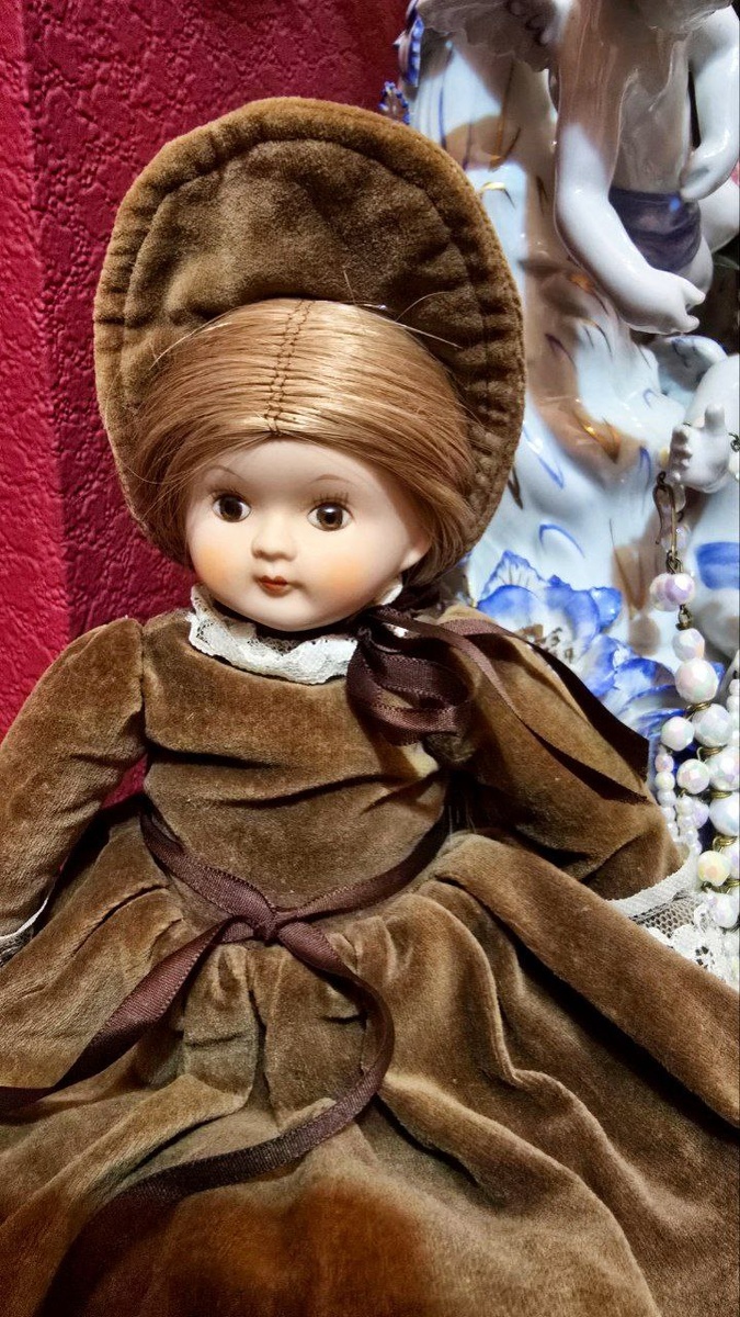 Кукла 🤗😍в Бархатном платье и шляпке ,фарфор