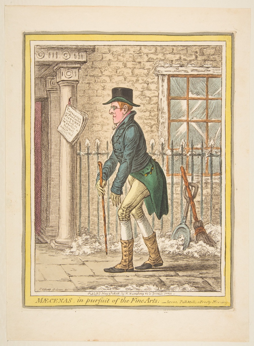 ΠΌΠ³Π½ΠΎΠ²Π΅Π½ΠΈΠΉ: ΠΠ°ΠΊ Gillray ΠΎΠΏΠΈΡΡΠ²Π°Π΅Ρ ΠΌΠΎΡΠΎΠ·Π½ΡΠΉ ΡΡΡΠ΅Π½Π½ΠΈΠΉ ΠΊΠΎΡΠΌΠΎΡ! Π ΡΠ΅Π΄Π΅Π²ΡΠ΅ "Maecenas, in pursuit of the Fine Arts" ΠΠΆΠ΅ΠΉΠΌΡ ΠΠΈΠ»Π»Π΅ΠΈ ΠΏΠ΅ΡΠ΅Π½ΠΎΡΠΈΡ Π·ΡΠΈΡΠ΅Π»Ρ Π² ΠΌΠΈΡ ΡΡΡΠ΅Π½Π½Π΅ΠΉ ΡΠ²Π΅ΠΆΠ΅ΡΡΠΈ, Π³Π΄Π΅ Π·Π°ΠΌΠ΅ΡΠ·ΡΠΈΠ΅ ΡΠ»ΠΈΡΡ ΠΠ°Π» ΠΠΎΠ»Π» ΡΠ»ΠΎΠ²Π½ΠΎ Π΄ΡΡΠ°Ρ. ΠΠ° ΠΏΠ΅ΡΠ²ΡΠΉ Π²Π·Π³Π»ΡΠ΄, ΡΡΠΎ ΠΏΡΠΎΡΡΠΎ ΡΡΠ΅Π½Π° Ρ Ρ