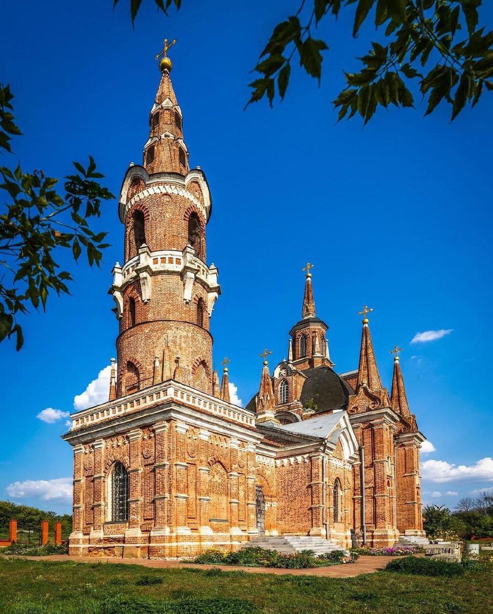 🇷🇺 Церковь иконы Божией Матери «Знамение» в селе Вешаловка Липецкая обл. Храм, будто сошедший со страниц средневекового романа: высокие окна, стрельчатые арки, изящные башенки. Это не эклектика, а настоящая псевдоготика, вдохновлённая русским зодчеством и европейской архитектурой. Заложенный в 1768 году и освящённый в 1794-м, храм, возможно, создавался по проекту самого Василия Баженова. Владелец усадьбы, гвардии ротмистр Яков Татищев, хотел построить что-то действительно грандиозное — и у него получилось. В 1932 году церковь закрыли, и только в 2003-м здесь снова зазвучали молитвы. Сейчас это действующий храм и памятник федерального значения, который поражает и своей историей, и своим обликом.