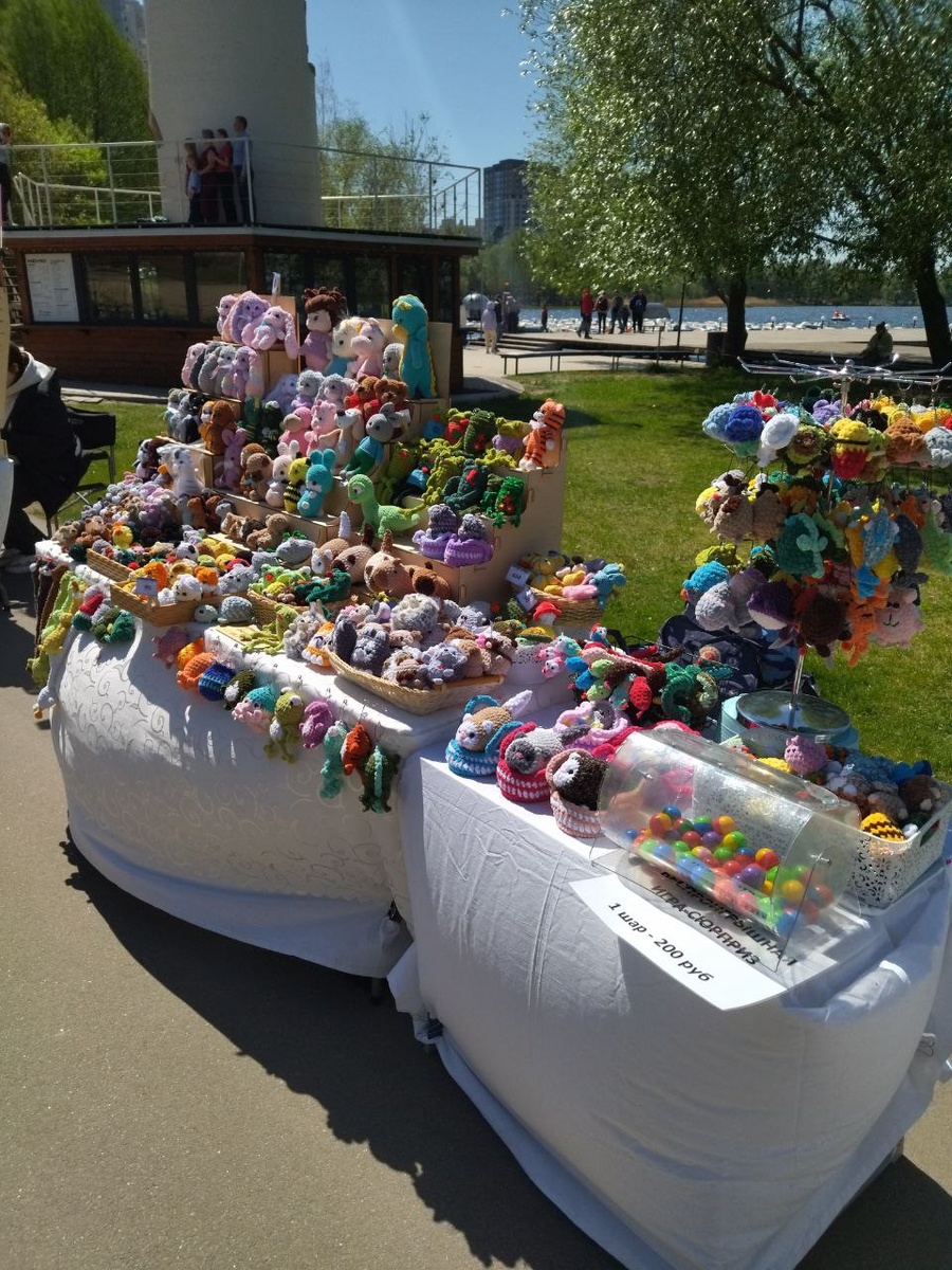 Вчера была ярмарка в парке Дельфин (Воронеж) Хотела выложить пост вчера, но, что-то пошло не так🤣🙈 Но, всё по порядку🥰 Солнечный ветреный день ☀ как всегда сулил море впечатлений. Из-за ветра, который то затихал, то пытался тебя закружить в танце. Скатерть еле закрепила, сборка полок затянулось, так как они пытались тоже полетать🤣 Всё разложила, но, это было только начало... Моя стойка с игрушками летела раз 5, это точно. Приходилось всё время её придерживать при порывах ветра. Взяла с собой сумку с рукоделием, наивная🤣 повязать я так и не смогла. Но, я счастлива. Увиделась с моими любимыми мастерами. Увиделась с самым добрым человечком, Мариной Марина Посмеялись с Юлей и Катей Но, вечер не предвещал быть томным.. Налетел очень сильные ветер с дождём... Весело... Стол почти перевернуло, полки с игрушками полетели вместе со скатертью. Спасибо Марина, добрая фея мне помогла. У меня такой экспресс сборки изделий и полок не было ещё ни разу 🤣🤣🤣 10 минут и всё готова.