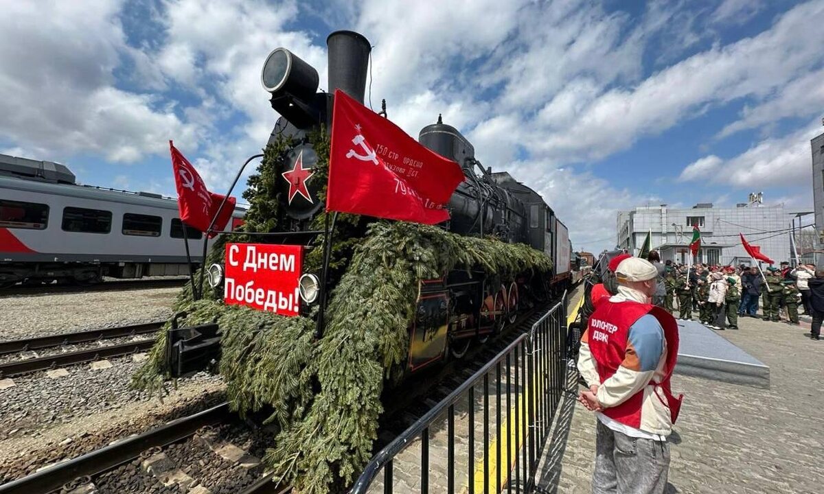 В Южно-Сахалинске встретили «Поезд Победы» 🧧 🎖 В его состав вошли пассажирские вагоны для ветеранов и почётных гостей, а также платформы с историческими инсталляциями и экспонатами военной техники времен Великой Отечественной войны. На железнодорожной платформе военный духовой оркестр Сахалинского гарнизона и ансамбль современной народной песни «Русский терем» исполнили всеми любимые песни военных лет. Прибытие передвижного музея – это яркое событие для нашего города в преддверии 80-й годовщины Великой Победы 💐 💬 @ysakhalinsk