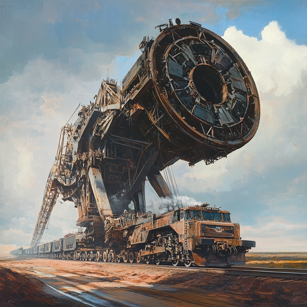 Роторные экскаваторы, используемые для добычи полезных ископаемых открытым способом, настолько огромны, что их транспортировка становится настоящим инженерным вызовом. Такие машины весят сотни тонн и перевозятся в разобранном виде на десятках платформ.