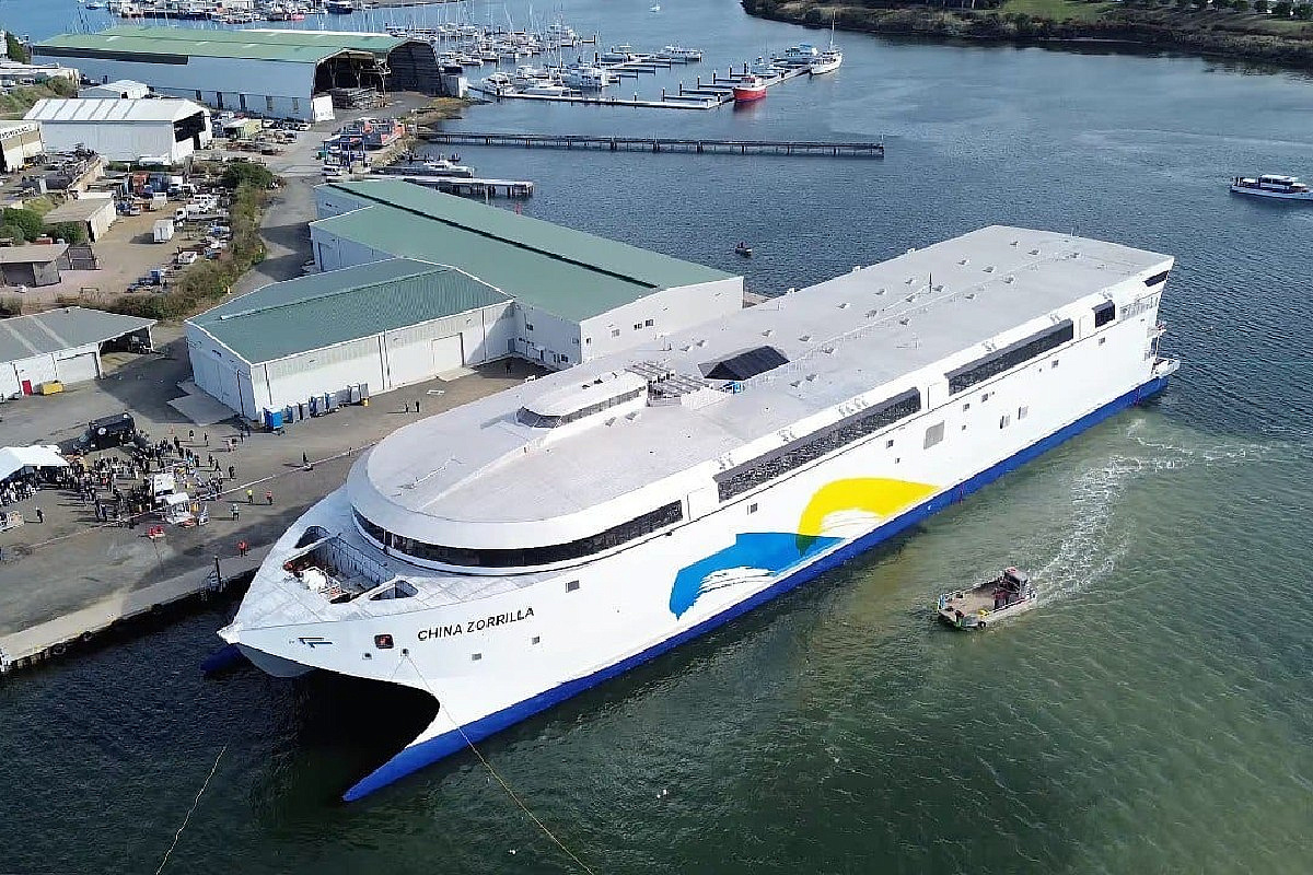 Австралии состоялся спуск на воду революционного электрического парома длиной 130 метров, который стал самым большим судном в мире, работающим исключительно