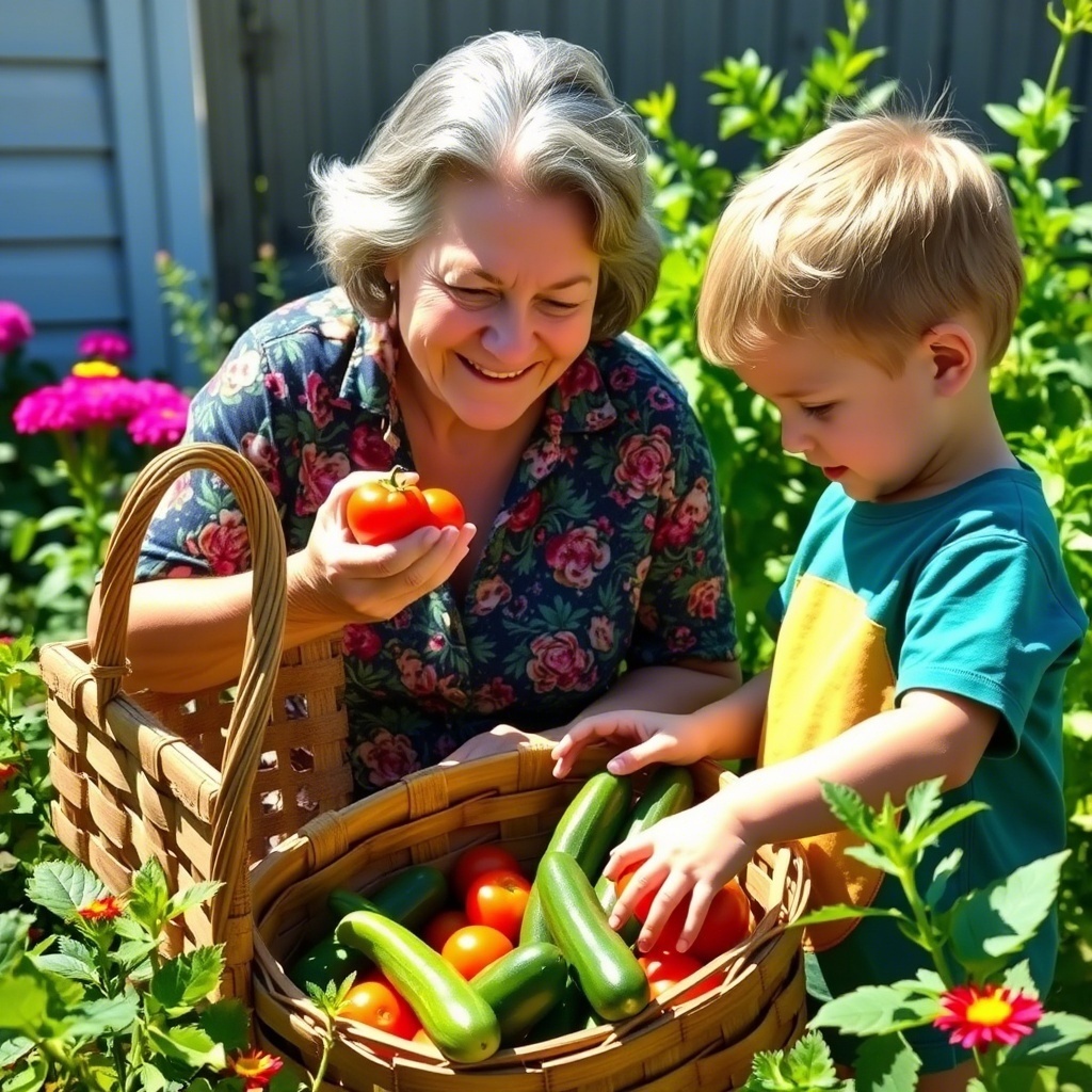 – Вот здесь наша еда и растет! – улыбнулась бабушка, указывая на ровные, зелёные грядки.